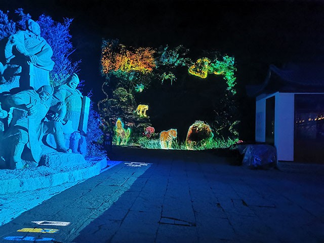 《劍門(mén)長(zhǎng)歌》以天然崖壁為幕,將劍門(mén)“天險(xiǎn)”獨(dú)一無(wú)二的崖壁與絢麗的燈光科技融合,借助全息投影、聲效互動(dòng)等科技手段以及綜合利用戲劇、舞蹈、音樂(lè)等藝術(shù)形式,再結(jié)合大型通關(guān)互動(dòng)游戲的植入,讓游客在行進(jìn)觀演中體驗(yàn)戶外真人“通關(guān)”游戲的趣味沉浸以及全感官的沉浸式體驗(yàn)。