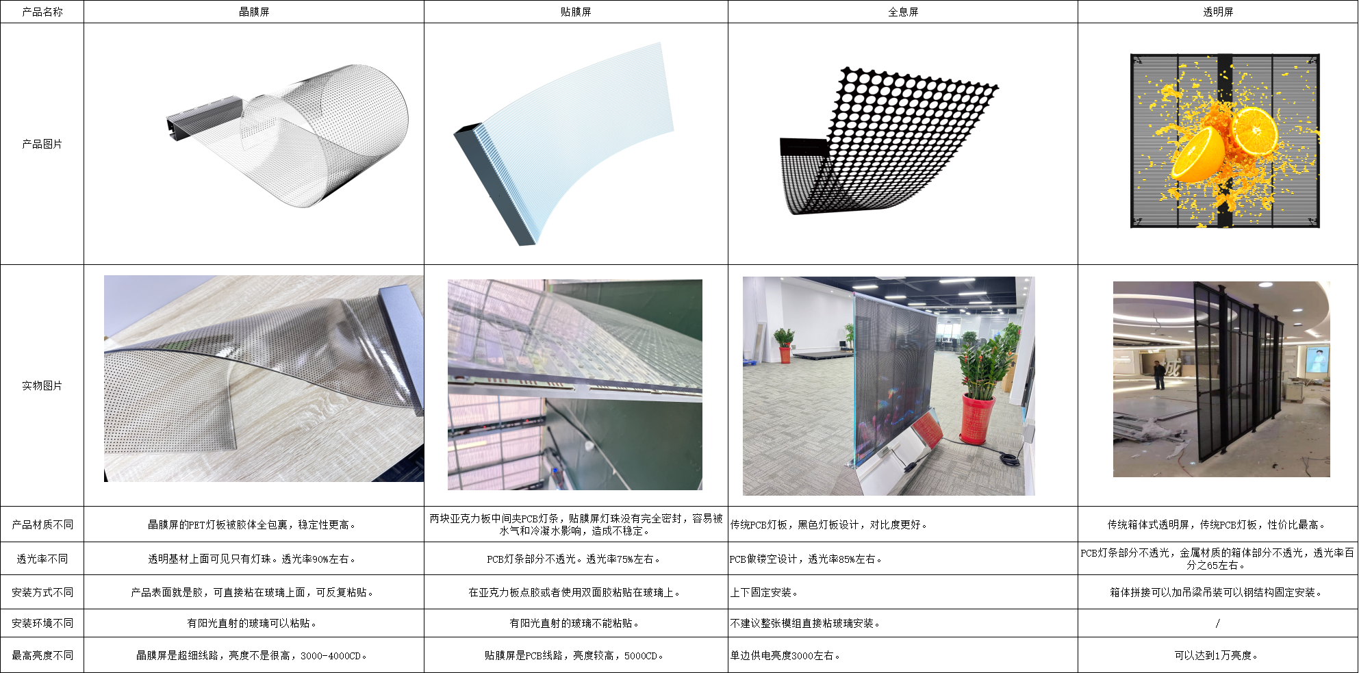 晶膜屏,全息屏,貼膜屏與透明屏對(duì)比